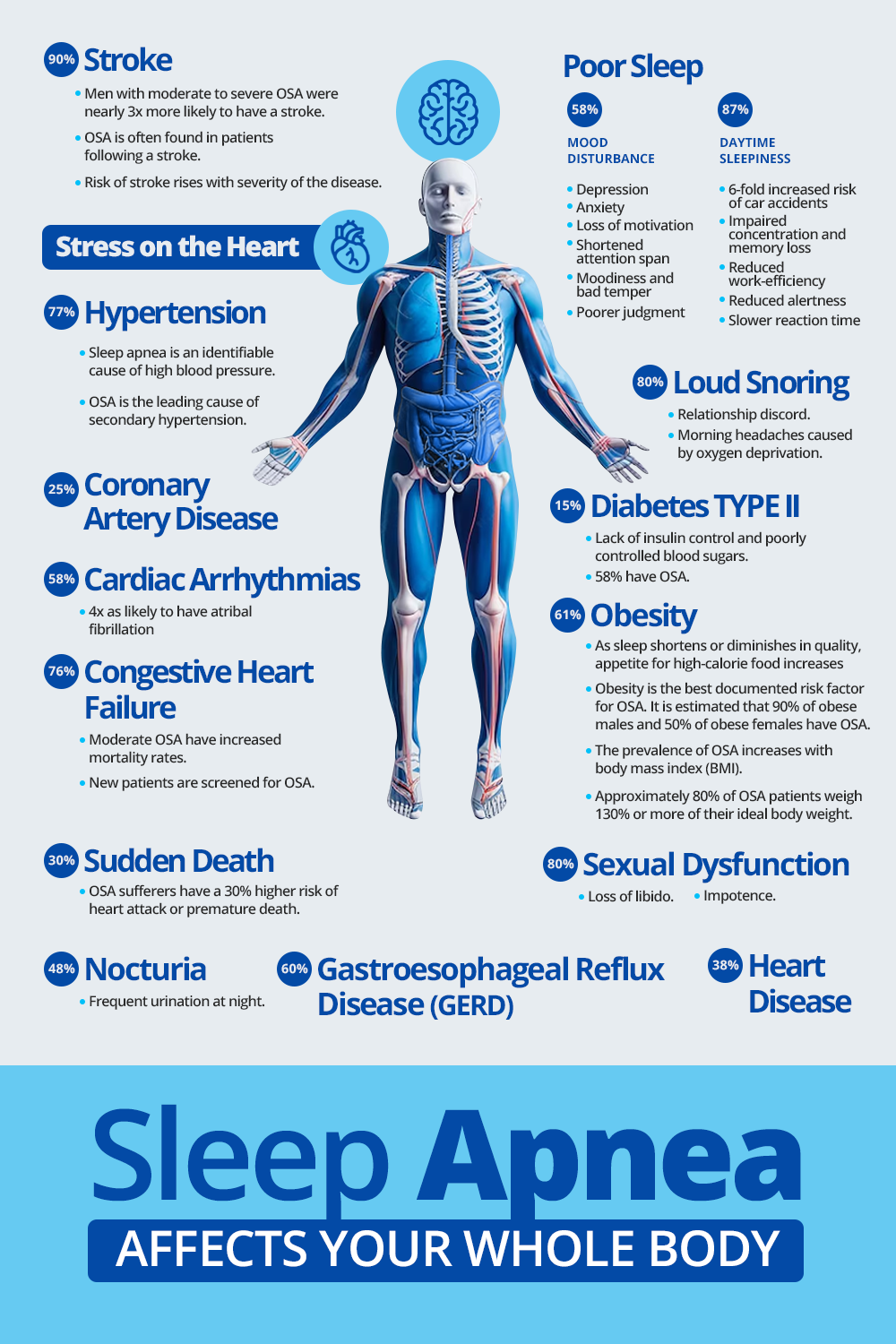 Treating OSA is essential to prevent excessive fatigue, morning headaches, and memory loss. Untreated OSA increases the risk of drowsy driving, accidents, and serious health problems like heart disease and stroke.